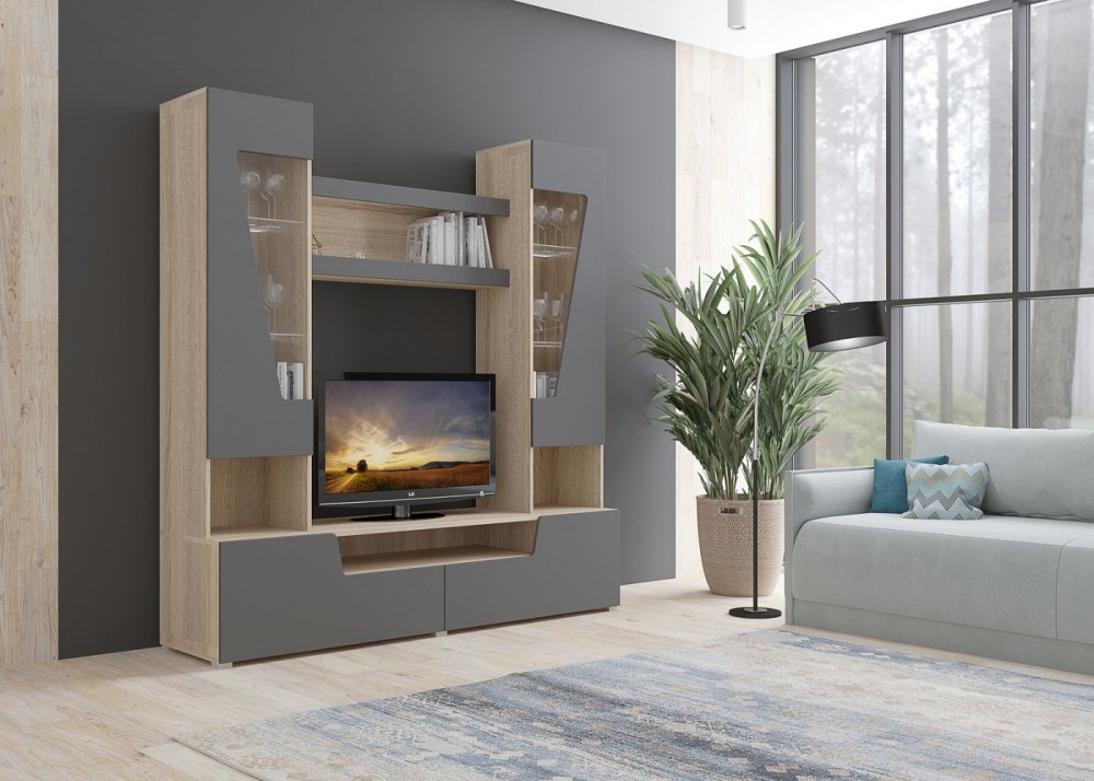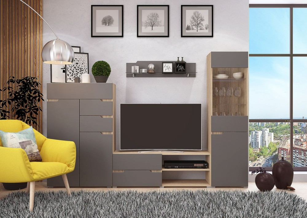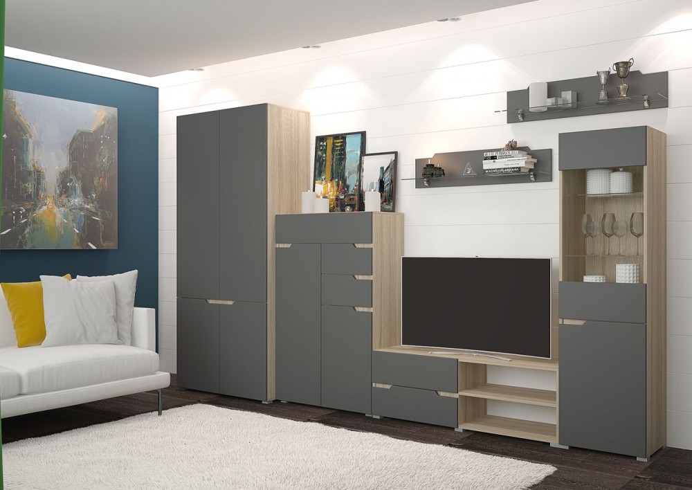 Гостиная АНТАЛИЯ (модульная) Сонома/Графит софт
