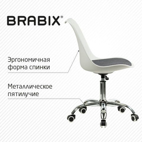 Интернет-магазин "Мебель 24" рад предложить Кресло стул BRABIX "Eames MG-310 CH", хром, пластик белый, ткань серая, 532924 по привлекательной цене, от производителя BRABIX.