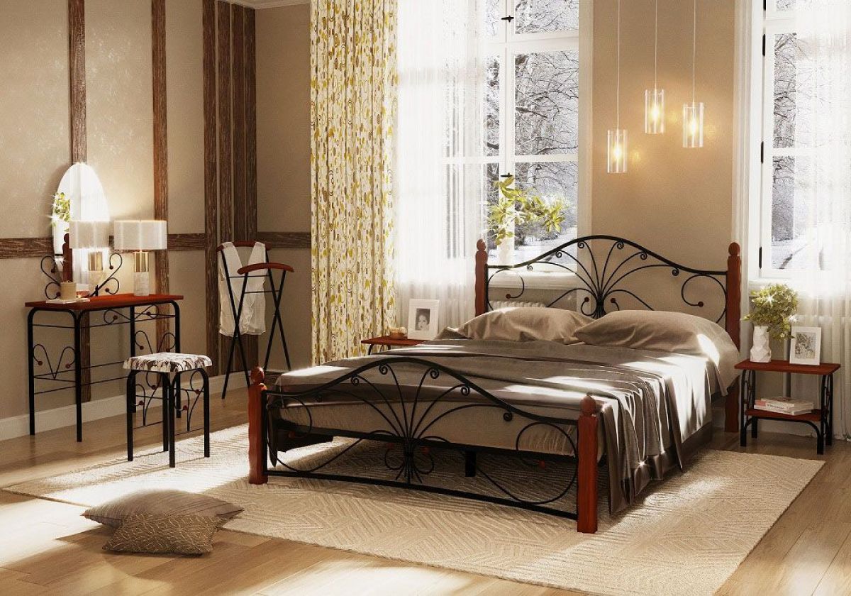 Интернет-магазин "Мебель 24" рад предложить Кровать "Фортуна 1" КМД 2.01 Черная (1600*2000) (ножки-махагон) с коваными элементами по привлекательной цене, от производителя ГЗМИ (Глазов).