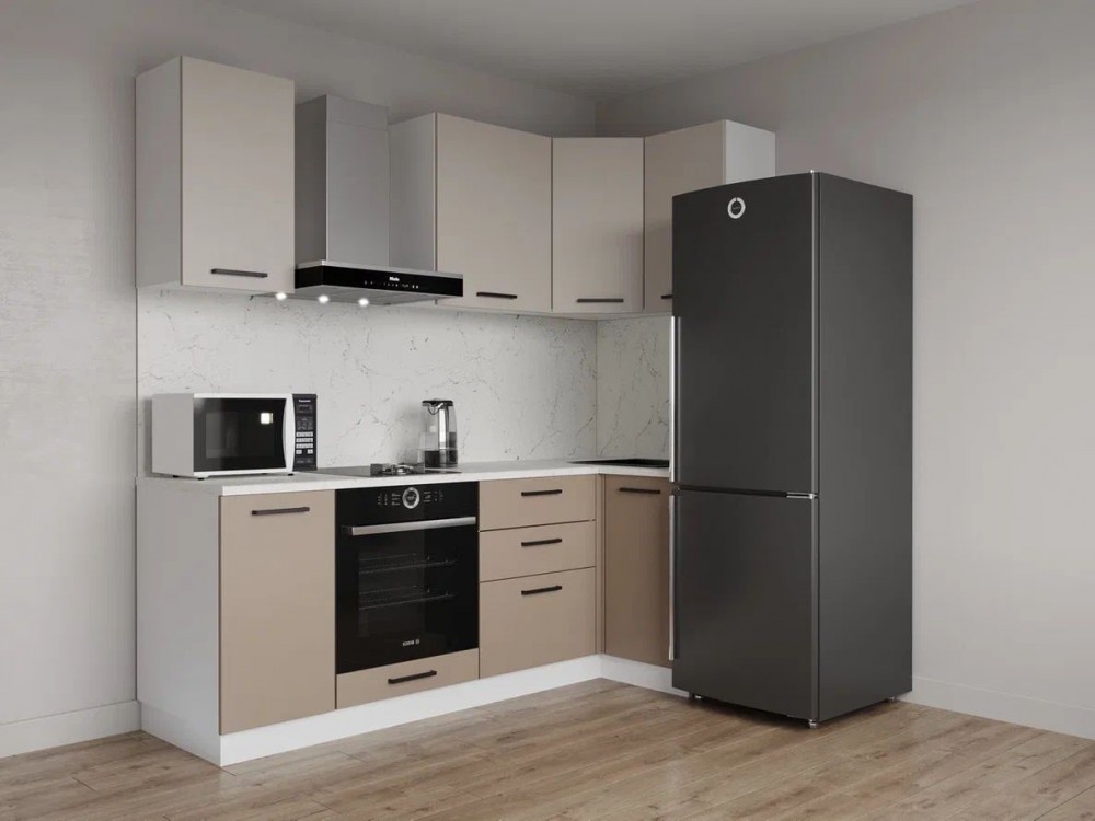 Кухонный гарнитур угловой Каппучино 2200*1000 (Стол. 38мм)