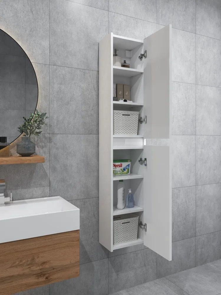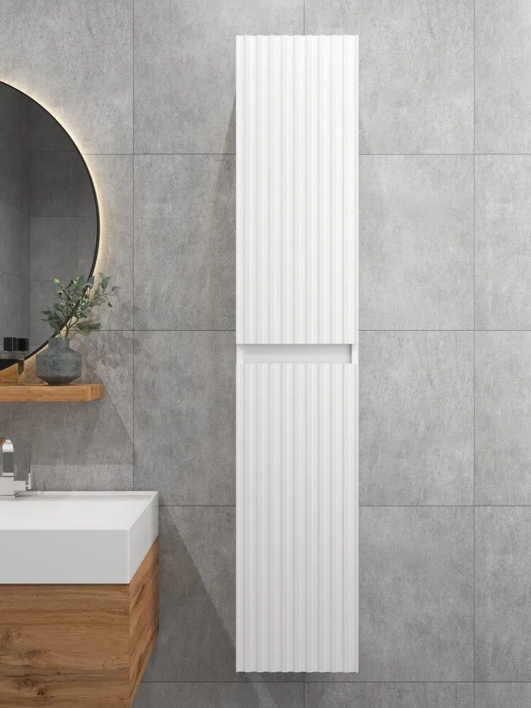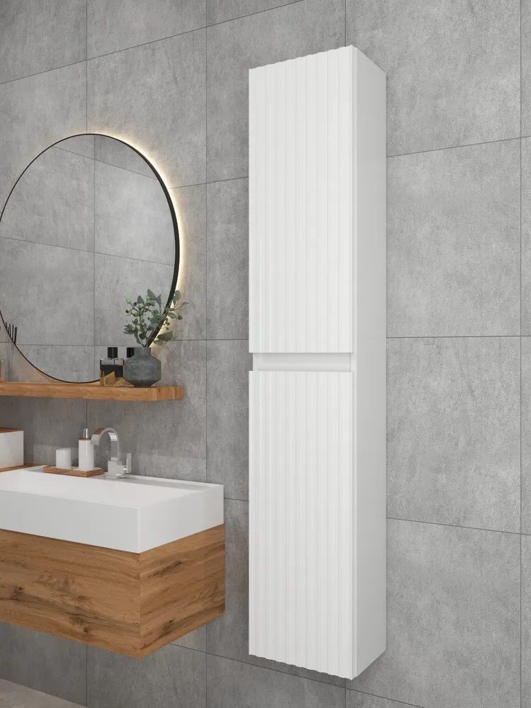 Шкаф пенал навесной для ванной MH10-MA 300х1548 (Белый-М 10.1.1) Белый глянец